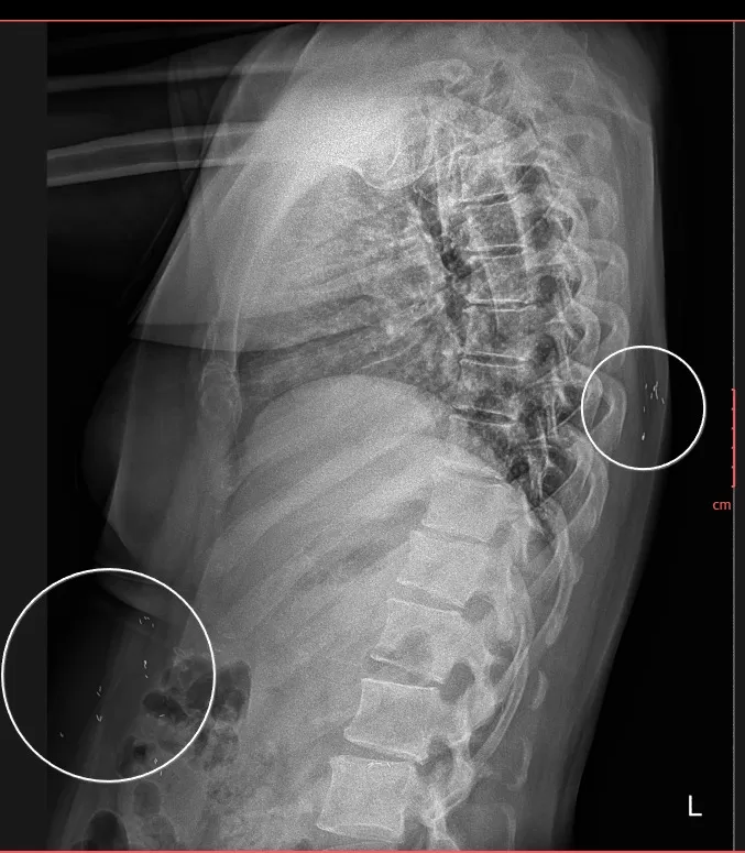 📸 Hình ảnh X-quang thường quy (đính kèm) cho thấy: