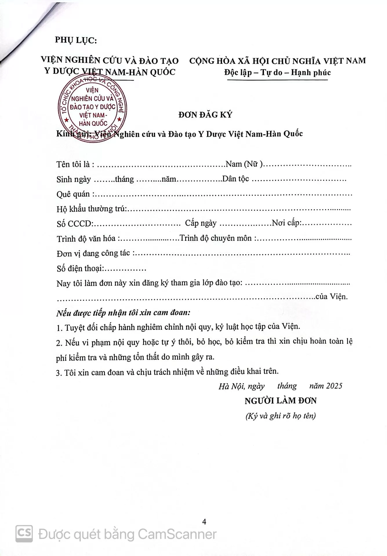 | Hà Nội, ngày tháng năm 2025 NGƯỜI LÀM ĐƠN (Ký và ghi rõ họ tên) |