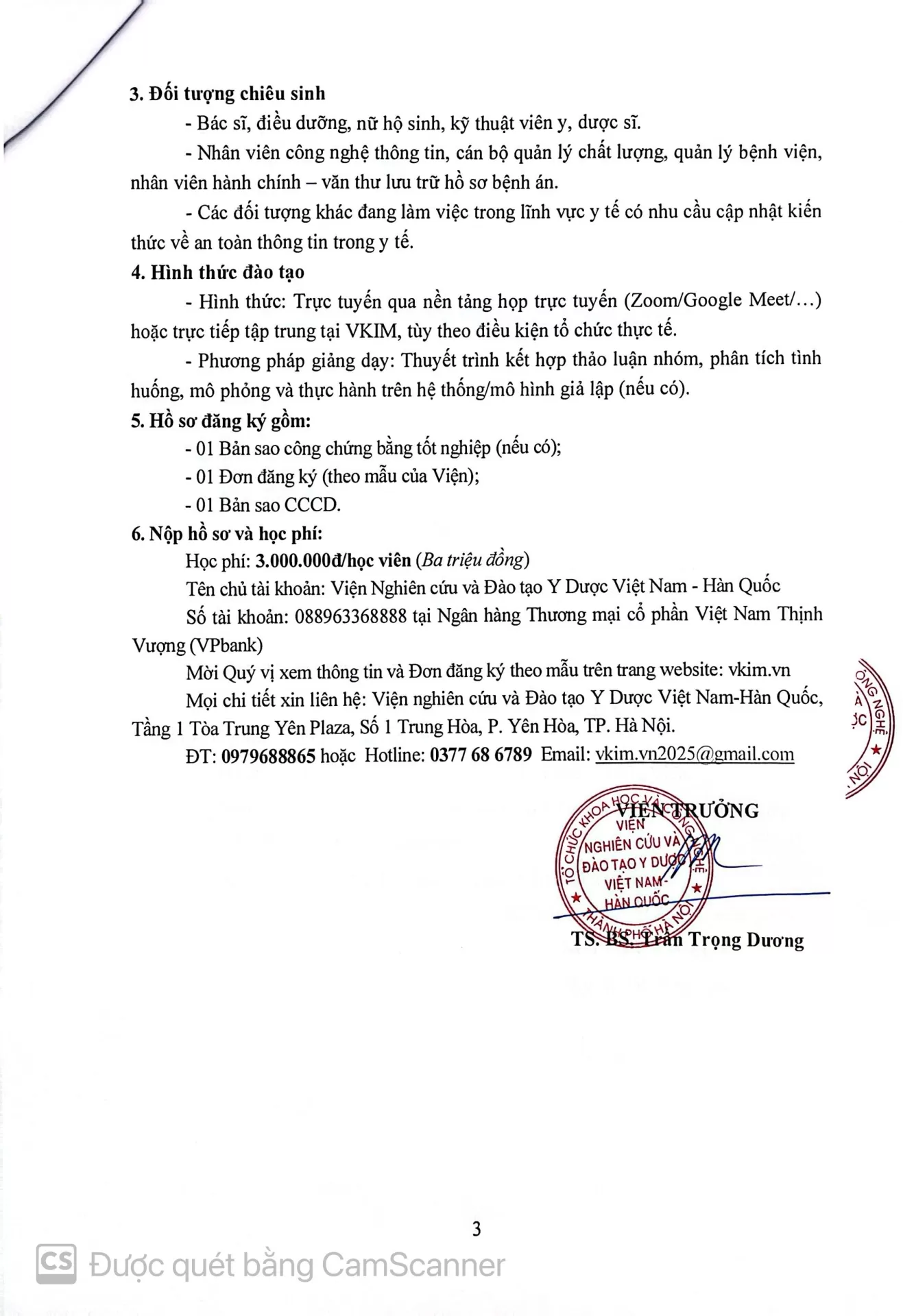 Mọi chi tiết xin liên hệ: Viện nghiên cứu và Đào tạo Y Dược Việt Nam-Hàn Quốc, Tầng 1 Tòa Trung Yên Plaza, Số 1 Trung Hòa, P. Yên Hòa, TP. Hà Nội.