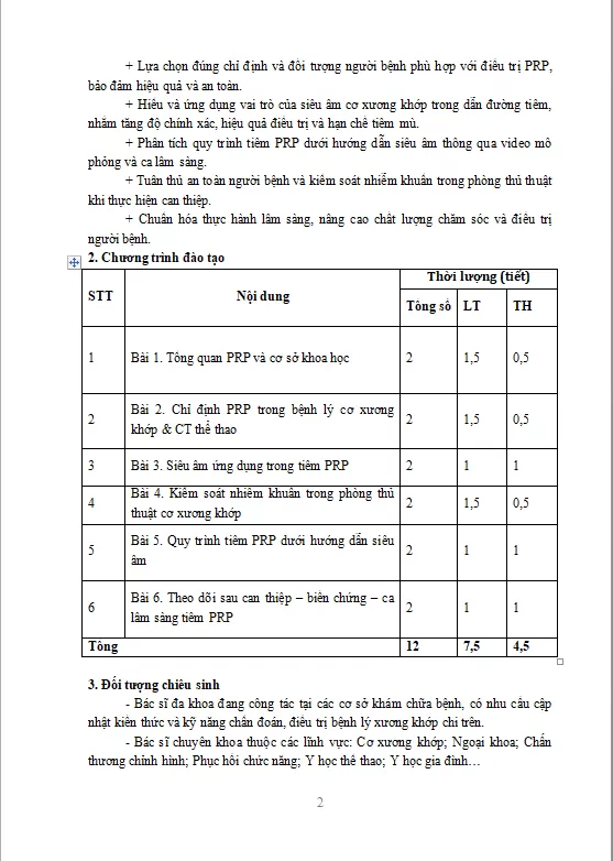 - Tên khóa học: Cập nhật kiến thức y khoa liên tục “Cập nhật ứng dụng PRP trong điều trị bệnh lý xương khớp và chấn thương thể thao”.
