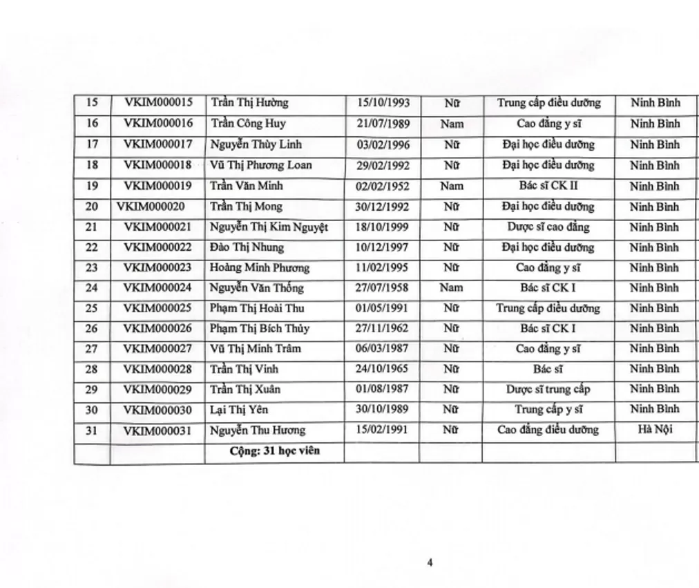 Khóa học có 31 học viên, theo danh sách ban hành kèm Quyết định số 196/QĐ-VKIM.