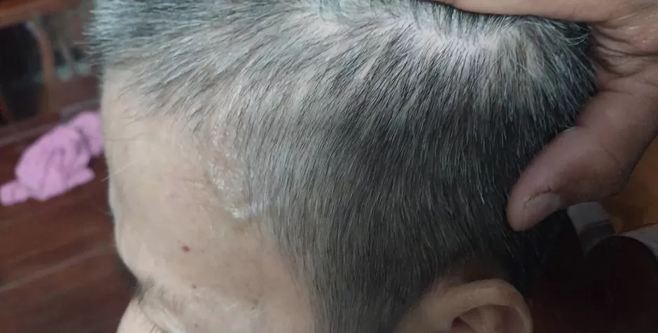 The scalp donor site healed rapidly, with complete re-epithelialization and full hair regrowth over the previously harvested area. No visible scarring or residual defect was observed.